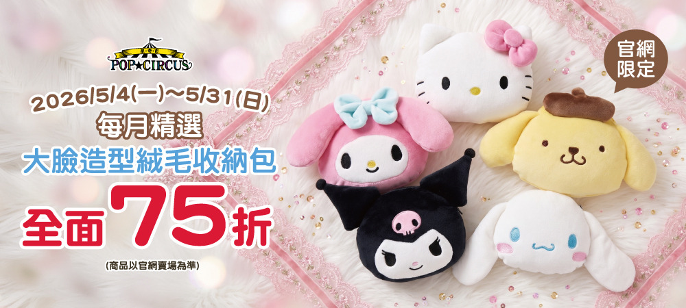 每月精選5️⃣三麗鷗明星大臉造型絨毛收納包↘75折