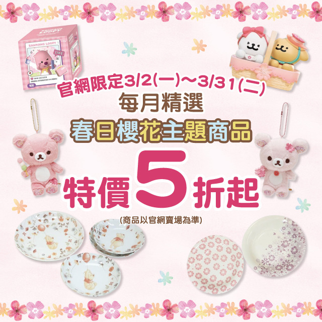 3月—春日櫻花祭,指定主題商品↘5折起。