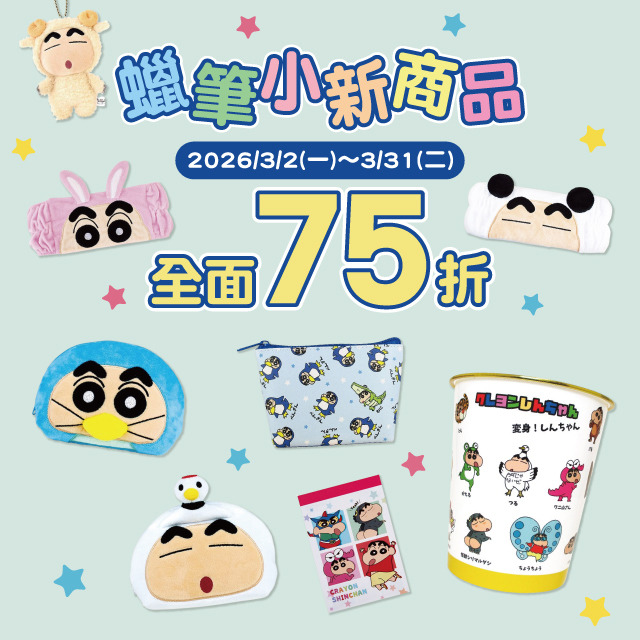 各種超趣味裝扮的蠟筆小新商品↘75折。
