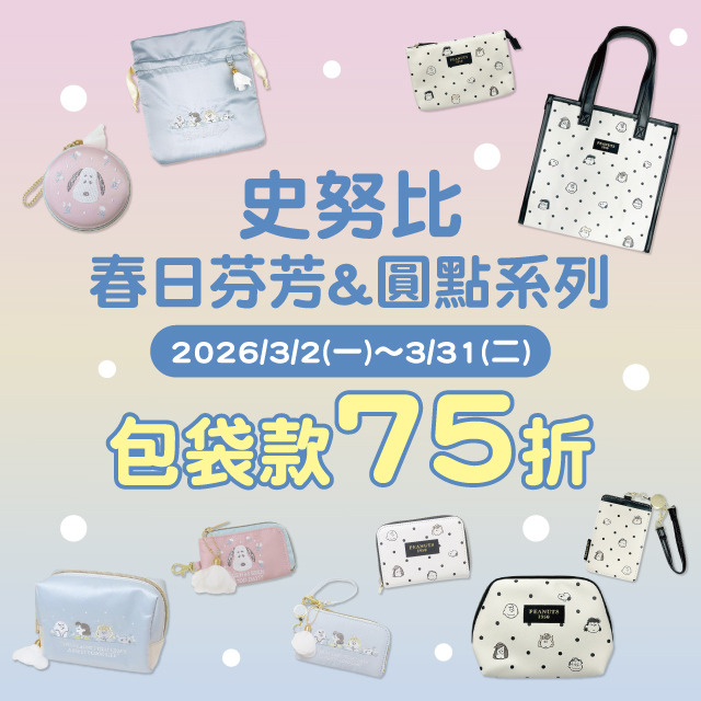 SNOOPY春日芬芳&圓點系列包袋↘75折。