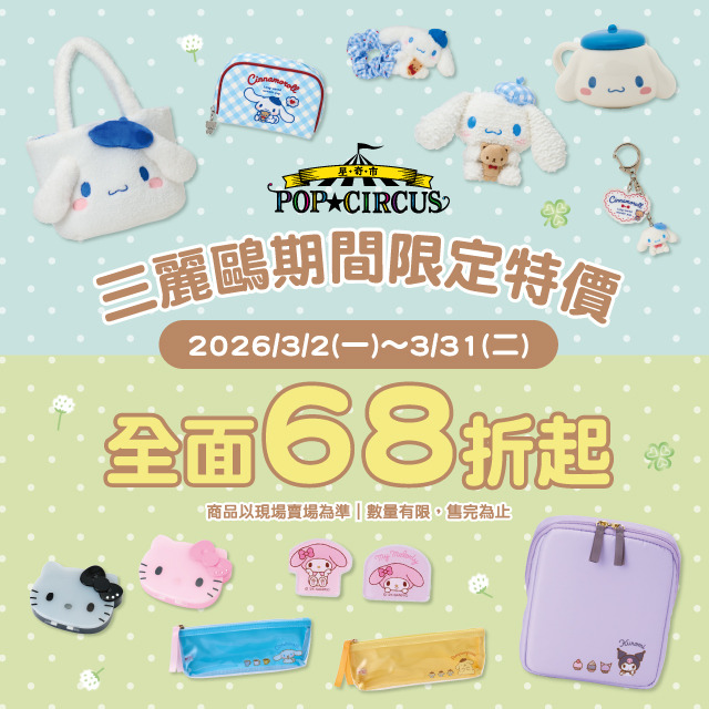 精選款三麗鷗本月限定特惠商品↘68折起。