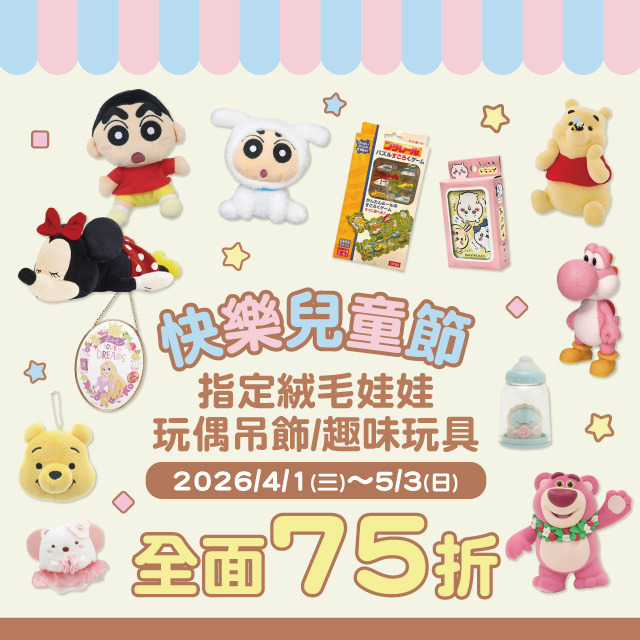 指定款絨毛娃娃、玩偶吊飾&趣味玩具↘75折