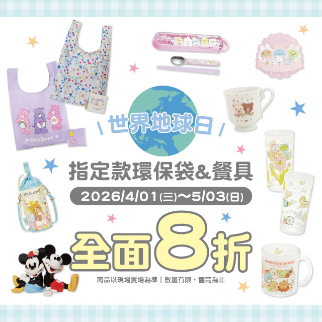 指定款愛地球餐具&卡通環保袋↘8折。