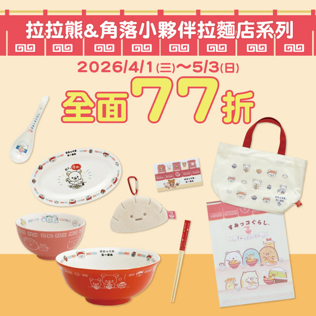 拉麵店系列,全面77折。