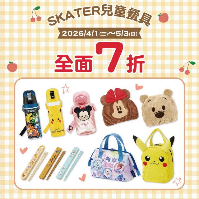 各式日本skater斯凱達兒童用品,精選商品↘7折。