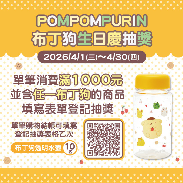 消費滿額且內含任一布丁狗商品,上網登錄即享抽獎資格。